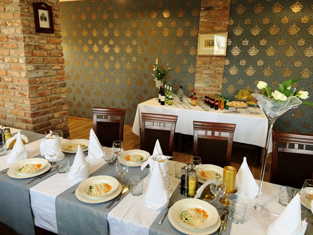 Restauracja Maestro to również idealne miejsce na zorganizowanie niezapomnianego przyjęcia weselnego. Eleganckie wnętrza – wyśmienita kuchnia i niepowtarzalny nastrój sprawią, że ten Najważniejszy dzień w Waszym życiu będzie najpiękniejszym. Doświadczenie jak i wyposażenie, którym dysponujemy pozwalają nam spełnić najróżniejsze oczekiwania zarówno dużych przyjęć jak i małych kameralnych, ale zawsze pozostających jako niezapomniane przeżycie.